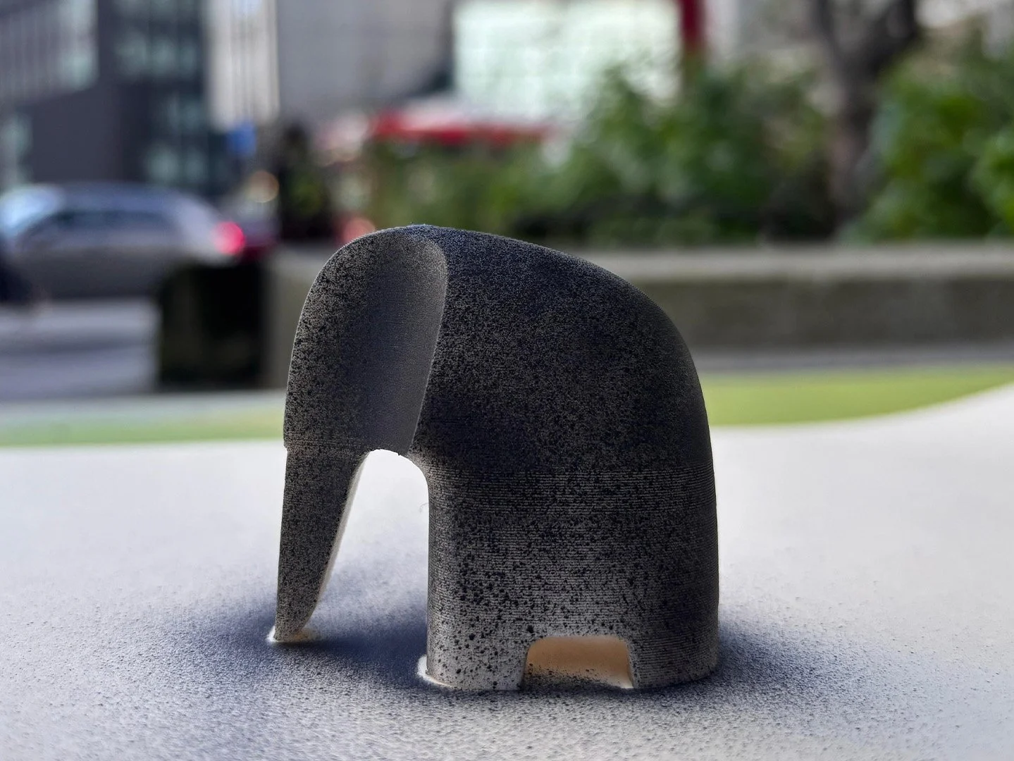 Fig. 5. The recordings were stored on a USB fitted with a 3D-printed elephant inspired by the Elephant & Castle landmark. Designed and printed by Xiyan Lou.