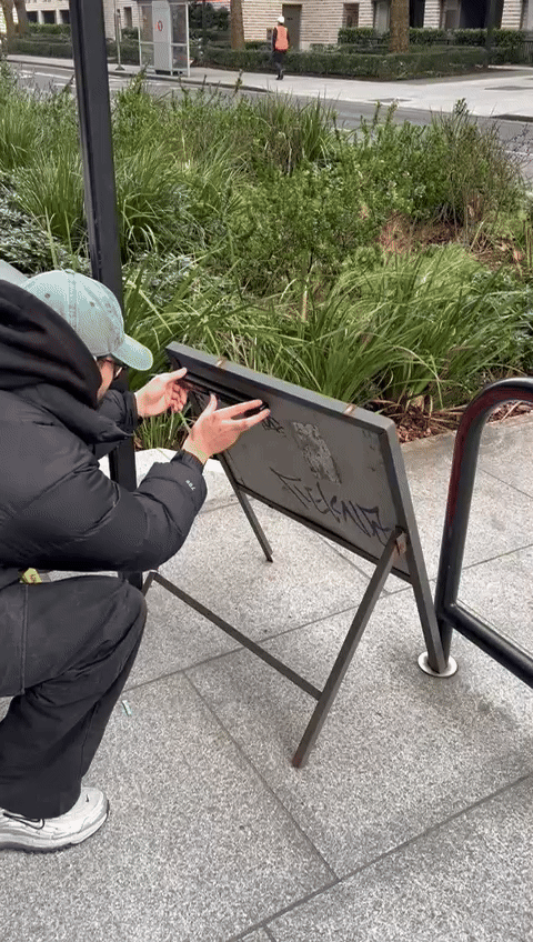 Fig. 7. A second Save the Elephant USB was hidden in the wild behind the Walworth road sign. Photographed by the author.