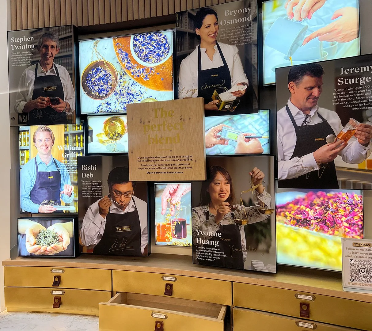 Fig. 2. Opening the Interactive drawers triggered stories by Twining tea experts. Photography by author and Merrin O’Connor.