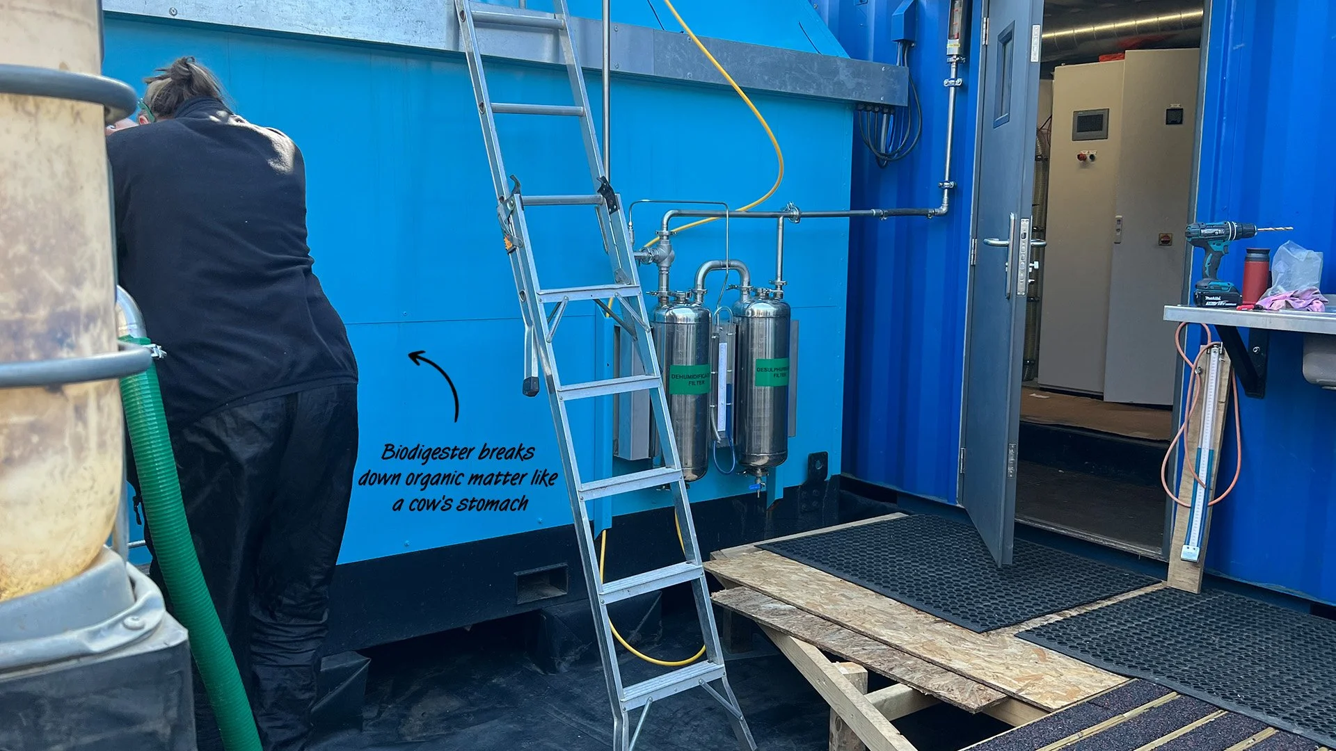 Fig. 6. Anaerobic biodigester at R-Urban Poplar, where organic waste is broken down to produce biogas and digestate, a nutrient-rich liquid fertiliser. Photographed by the author.