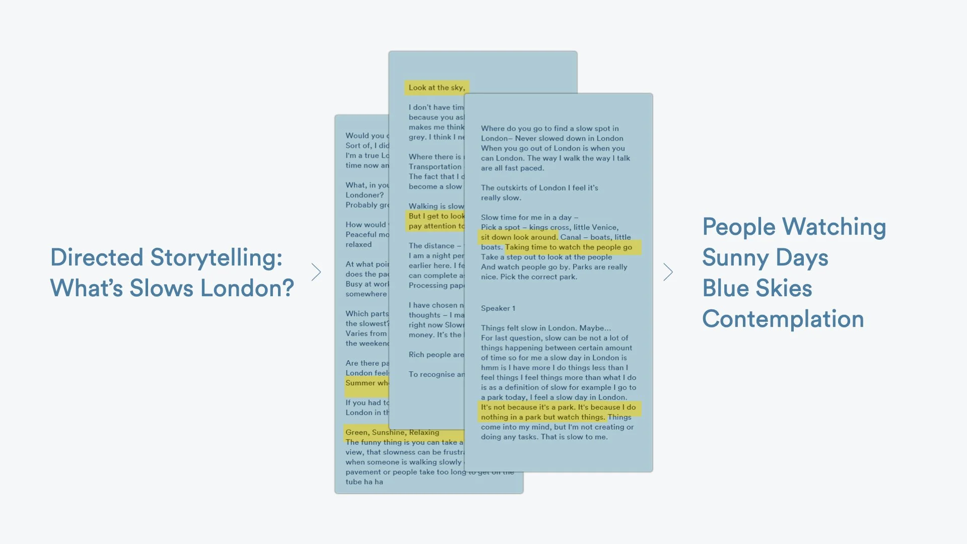That was the question we left off with last week. Alaistair’s immediate response was simple: Sundays, summer and pints. It felt like a charming place to start and we were excited to take the question out of the classroom and into the city. We spoke to Londoners directly, using a short directed storytelling exercise to understand what slowness actually feels like here and what triggers it.