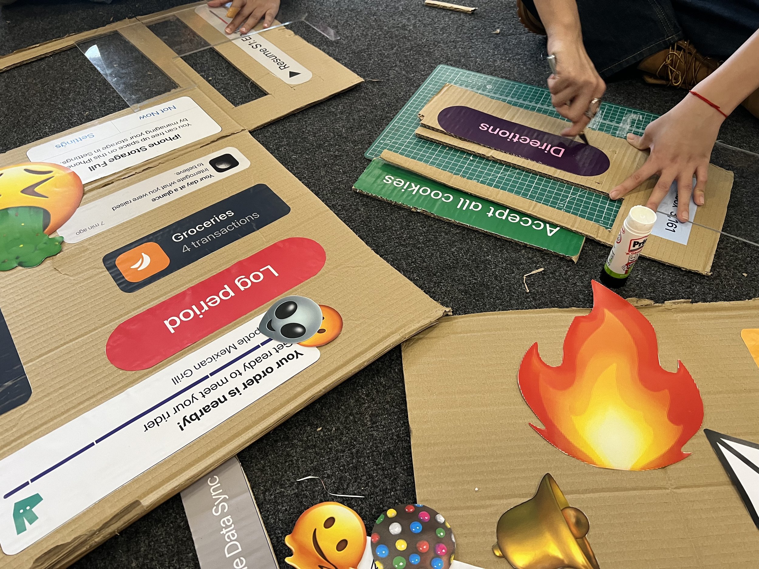 Fig. 4. Making of the physical notifications (bottom left) video by Vibhooti Sharma · (rest) photography by author.