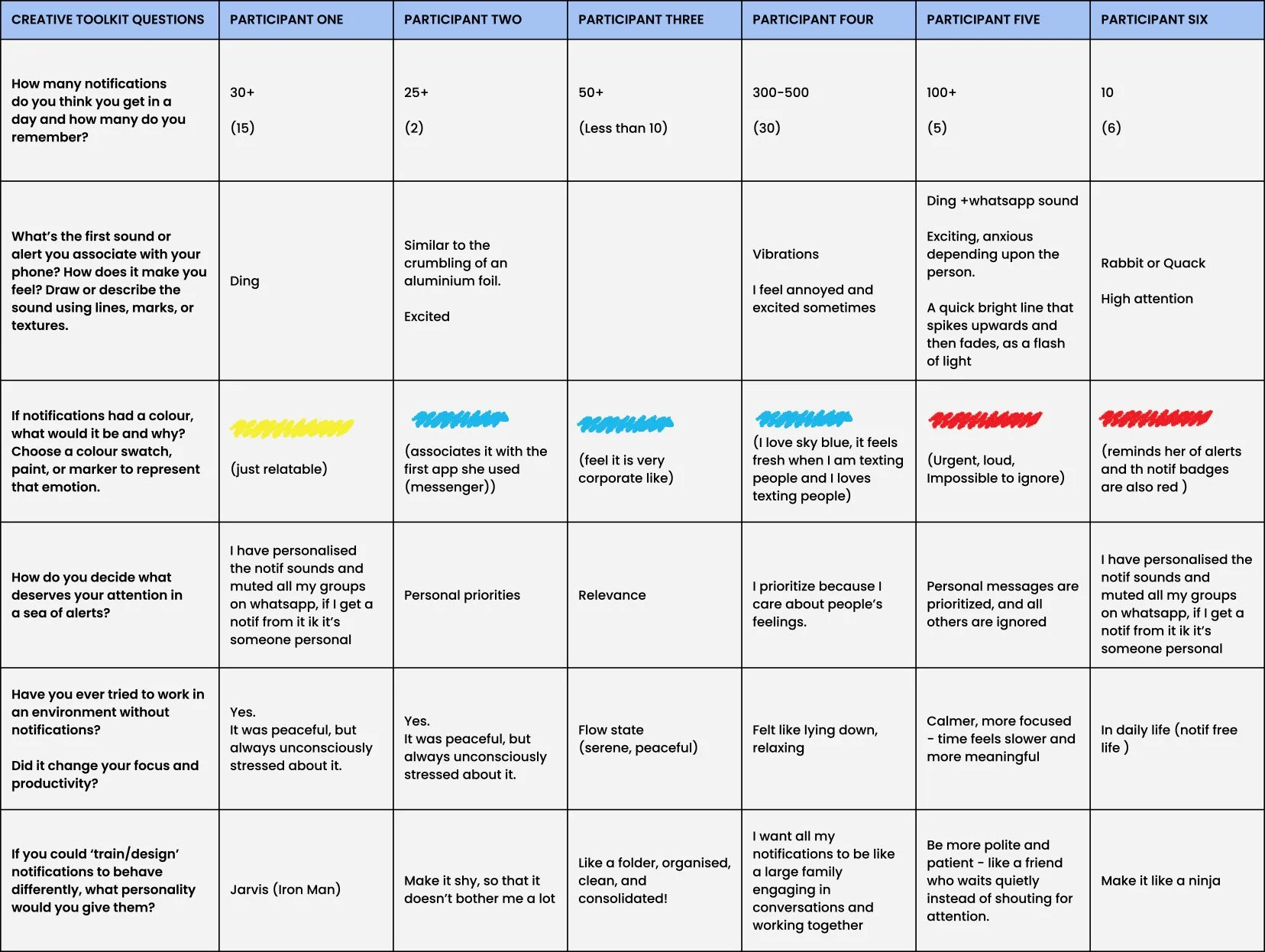 Rather than approaching radio waves as an abstract whole, we chose to focus on one familiar manifestation: smartphone notifications. Notifications felt like the most immediate and relatable way radio waves interrupt daily life. To explore this, we ran a creative toolkit exercise.