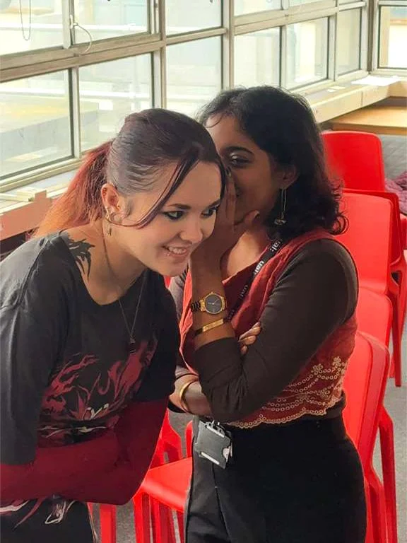 We began with a simple game of telephone. This exercise, helped confirm several behaviours associated with the act of whispering. People naturally lean in, become aware of breath and proximity, and focus more when listening. Whispering feels intimate. Many participants covered their mouths or cupped their ears, when exchanging a whisper.